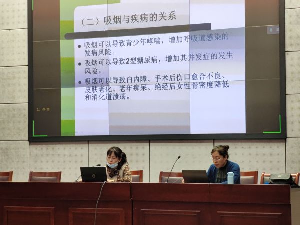 仲伟燕介绍,目前全世界吸烟人数约有13亿,每年有490万人死于烟草相关疾病,占总死亡构成的1∕10,预计2030年该数目将升至1000万,其中的700万分布在发展中国家,占总死亡构成的1∕6。烟草相关死亡目前已占全球死因构成的第一位,到2025年其死亡总数将超过肺结核、疟疾、生产和围产期并发症及艾滋病的总和。中国吸烟人数超过3.5亿,约有7.4亿不吸烟者遭受二手烟的危害。中国每年因吸烟死亡的人数逾100万,是全球死亡人数的五分之一,超过结核病、艾滋病和疟疾导致的死亡人数之和。现在吸烟者中将来会有一半因吸烟而提早死亡,吸烟者的平均寿命比不吸烟者缩短至少10年。她还重点介绍了当前烟草流行的情况、戒烟的益处以及如何戒烟,积极倡导不分何人、何时、何地积极开展控烟,倡议不吸烟者拒绝第一口烟、吸烟者成功戒烟、戒烟者不买烟,不接烟,不吸二手烟。