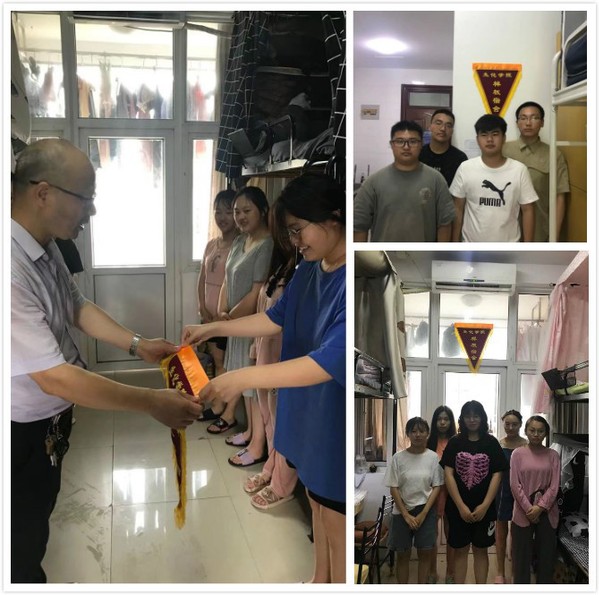 6月15日中午,学院领导、师生代表参加了“党员示范宿舍”、“样板宿舍”流动锦旗的颁发仪式。