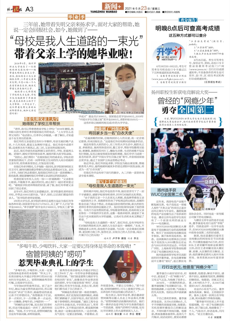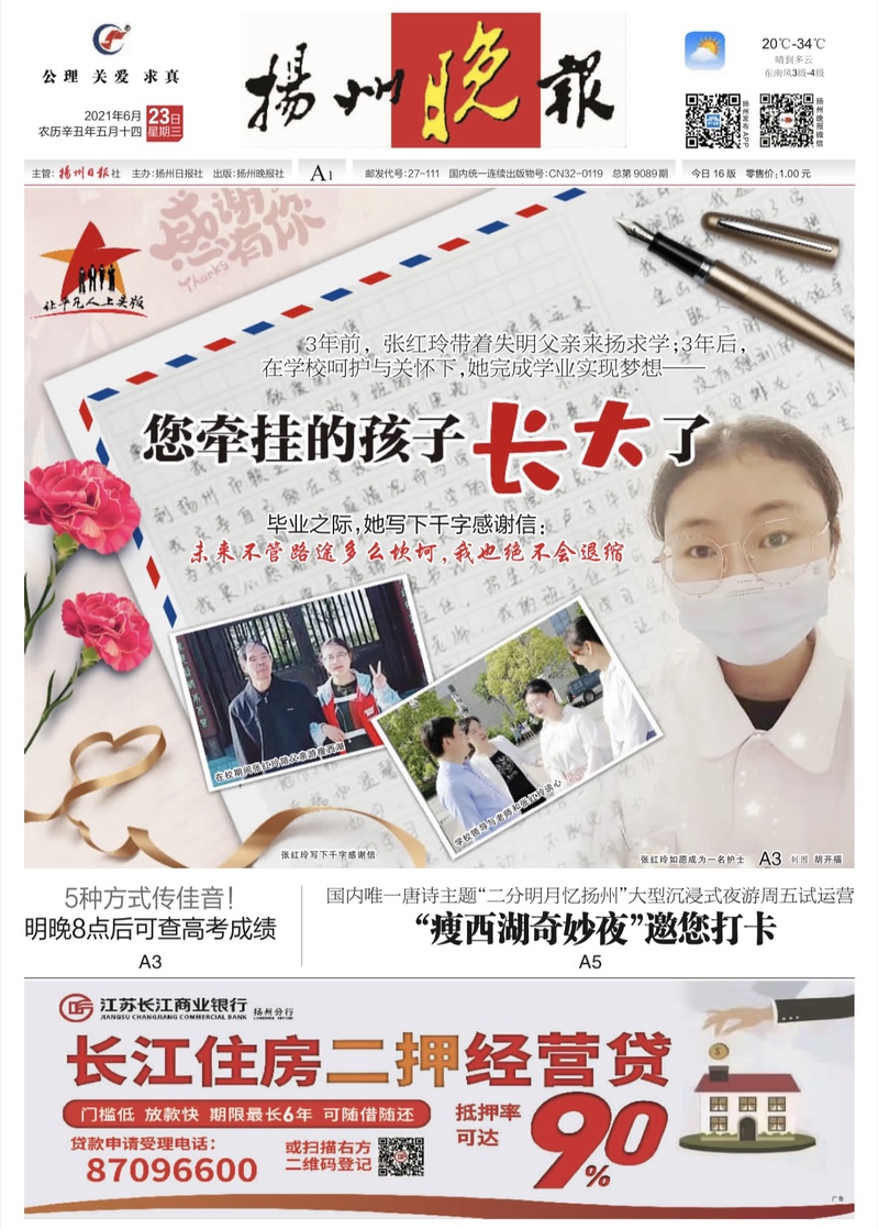 【扬州晚报头版头条】您牵挂的孩子长大了