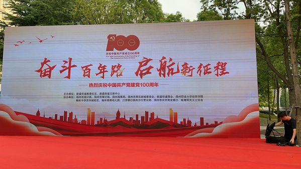 日前,在京华城怡景苑西门广场,由新盛街道殷巷社区主办,永利官网经济贸易学院等单位协办的“奋斗百年路,启航新征程”庆祝建党100周年文艺晚会正式拉开了帷幕。