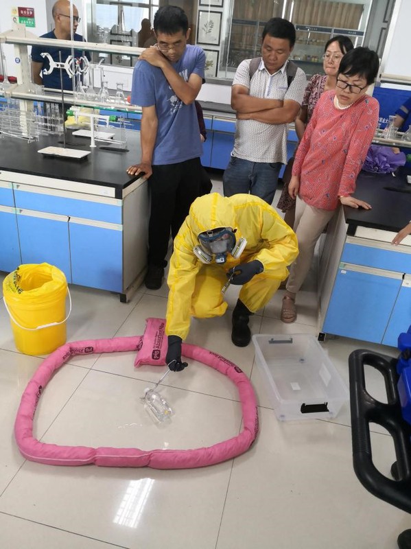 近日,设备与实践教学处主办、医学院协办的危化品泄露应急演练活动在无锡赛弗环保科技有限公司安全专家的指导下顺利开展。永利官网医学院师生参与了演练,资源与环境工程学院、生物与化工工程学院、园林园艺学院、医学院等学院的化学类实验室管理人员及教师全程观看了应急演练活动。整个演练过程井然有序,参演人员有条不紊,观看人员认真仔细,大家通力合作,保证了演练的顺利进行。