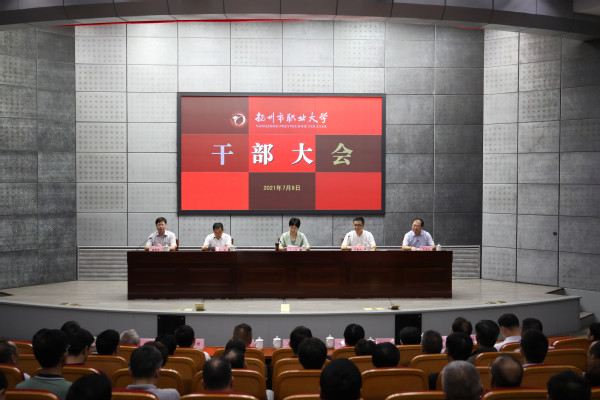 7月8日上午,永利官网召开干部大会,省委组织部来校宣布关于马顺圣同志任职的决定。扬州市委常委、宣传部部长张长金,省委组织部干部五处副处长尹振江,全体校领导、中层干部,校级老领导、区级以上“两代表一委员”、高级职称教师代表参加会议。会议由扬州市委组织部常务副部长徐龙主持。