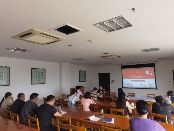 7月7日下午,图书馆党支部组织全体党员开展了党史学习分享会,图书馆馆长、图书馆党支部书记陆亚玲为全体党员上了“学习习近平总书记在庆祝中国共产党成立100周年大会上的重要讲话”专题党课,重点讲述了伟大的建党精神。