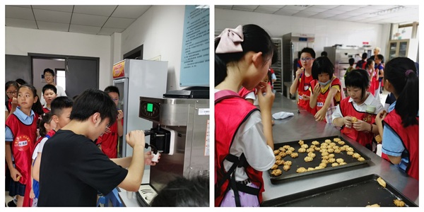 这次志愿行动是学院积极响应校团委“童心向党,快乐暑假”夏令营活动的号召进行的。学院主动承担了“神奇的化学之旅”这一项目。薛梅老师准备了“火山爆发”“黑面包”“烧不坏的手帕”“红刀进白刀出”等数十个趣味小实验,博得在场小同学的阵阵喝彩。孩子们踊跃举手,渴望亲自动手操作实验。在大学生志愿者的帮忙和贴心服务下,很多小同学都顺利过了把“瘾”。王征远带领同学们观看了动物标本,同学们充满好奇,抛出了“十万个为什么”,志愿者不厌其烦地一遍一遍讲解。学院食品专业的学生在老师指导下,提前做好了一批曲奇饼干和冰淇淋。在场小同学一个个翘着大拇指,对大哥哥大姐姐们的手艺赞不绝口。