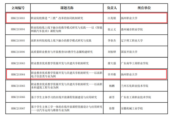 根据《关于组织做好职业教育改革创新课题申报工作的通知》相关工作要求,经自主申报、形式审查、专家评审、综合评议等程序,由永利官网信息工程学院院长江兆银、副院长许开维负责的两项课题喜获立项。