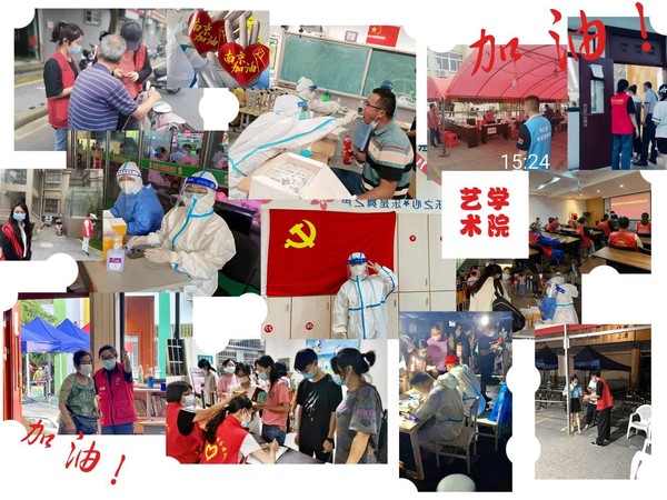 数媒2001韩亚峰,环艺2001钟晓双,视传2002韩旋康、陈啸乐,视传2003季文文、刘舒梦,产品1901蒋成,音教1902吕霖等同学也都在江苏各地一线默默奉献着,据悉,艺术学院越来越多的同学开始投身到志愿服务中去。