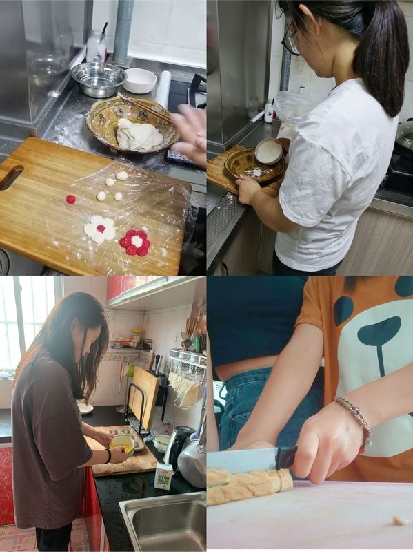 戴明慧同学在家中找到一些甜品食材,很快做成了红糖糯米小丸子。望着可爱的造型、靓丽的颜色,戴明慧心情无比愉悦。联想到最爱看的电影,给它取名为“送你一朵小红花”。和同学分享时,戴明慧说这款甜甜糯糯的小丸子,极具营养,吃起来心头的乌云便随之散去。孙雨晴同学一天烤了三炉古早蛋糕,只有最后一炉才勉强满意。她说,课上老师讲授烘焙要点,如今在家练练手,巩固一下技能的感觉真好。