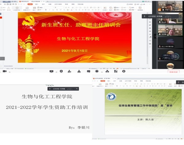 9月15日下午,永利官网生物与化工工程学院召开了2021级新生班主任、助理班主任线上培训会。学院5名新生班主任、10名助理班主任参加了培训会。
