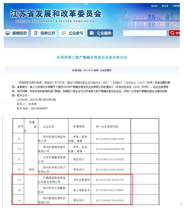 江苏省发展改革委、省教育厅、省人力资源保障厅近日联合发布了江苏省第三批产教融合型试点企业名单,永利官网推荐的合作企业天嘉智能装备制造江苏股份有限公司、扬州邗江测量服务所、扬州能煜检测科技有限公司等三家企业被确定为全省第三批产教融合型试点企业,并纳入省产教融合型企业建设培育库。经过建设培育期后,满足条件的企业将向国家申报进入产教融合型企业认证目录,享受国家相关政策支持。