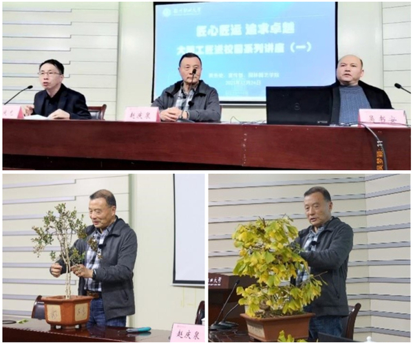 11月24日下午,国家级非物质文化遗产传承人,中国盆景艺术大师、园林高级工程师赵庆泉在学校崇德楼315报告厅开启 “大国工匠进校园”第一讲。本次活动由教务处、宣传部和园林园艺学院主办,腾讯会议线上同步直播,大运河传媒现场全程直播,线上线下2000多名永利官网师生共同参加了此次讲座。