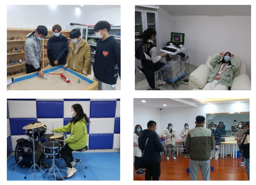 参观人员分为九批,在大学生心理协会志愿者的引导下,佩戴口罩依次进入沙盘治疗室、心理放松室、音乐治疗室、团辅教室等,并在讲解人员的带领下现场体验了团体沙盘游戏、心理放松仪器、放松宣泄乐器、团体素质拓展等内容。