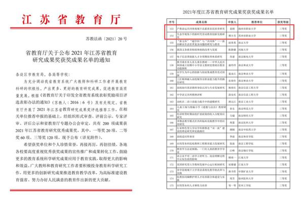 省教育厅为更好地调动全省教育系统广大教学科研工作者开展科研创新和推动科技进步的积极性,促进产出高质量的教育研究成果,不断提升江苏教育系统科学研究的学术影响力,设立了江苏省教育科学研究成果奖,包括高校科学技术研究成果奖、高校哲学社会科学研究成果奖、教育研究成果奖三大类奖项,每两年评选表彰一次,是全省教育系统科研类的最高奖项。