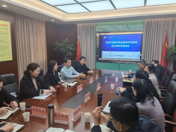12月23日下午,扬州科教集团教育发展公司总经理王伟宇一行5人来永利官网调研交流。发展规划处、教务处、机械工程学院、电气与汽车工程学院、信息工程学院、纺织服装学院、经济贸易学院等学院、部门负责人参加了交流会。