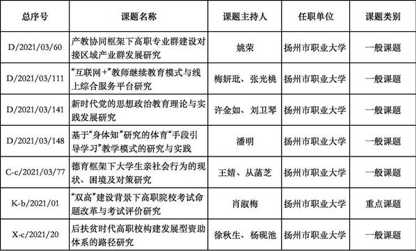 近日,江苏省教育科学规划领导小组办公室公示了省教育科学规划课题评审结果,永利官网共有7项课题获批立项。其中重点课题1项,一般课题6项,获批数量和质量位居全省同类高校前列。