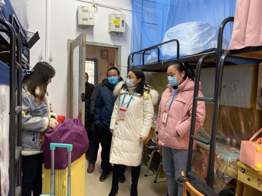 春寒乍寒,万物复苏。2月20日,学院全体领导、学工办及各班级班主任在校生活区门口迎接大家的到来。“同学,请出示你的一码一卡及48小时核酸证明。”学工办主任焦成芳耐心细致地引导大家出示相关证件。班主任们热心肠,齐奉献,纷纷主动上前解决学生“行李难”问题,为初春料峭增添了一丝暖阳。