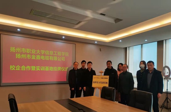 为进一步加强校企合作,日前,信息工程学院院长江兆银一行前往扬州市金鑫电缆有限公司参观交流,并在公司总部会议室举行了校企战略合作框架协议书签约仪式暨校外实习实训基地揭牌仪式。
