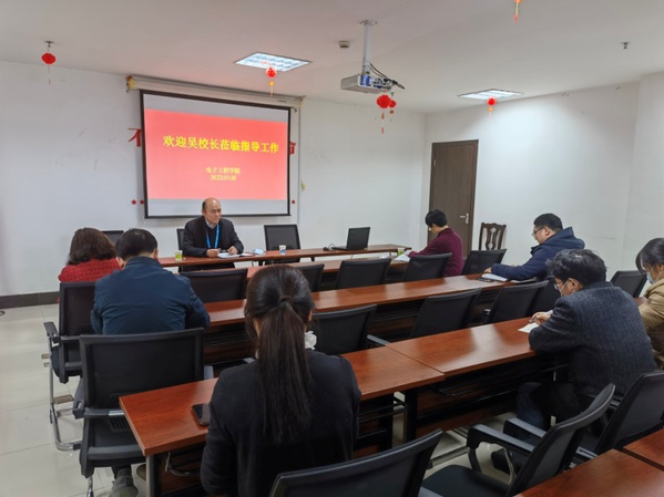 3月18日下午,副校长吴书安深入电子工程学院就落实学校疫情防控、双高培育以及学院重点工作开展调研。学院领导班子以及内设机构负责人参加了本次调研座谈会。