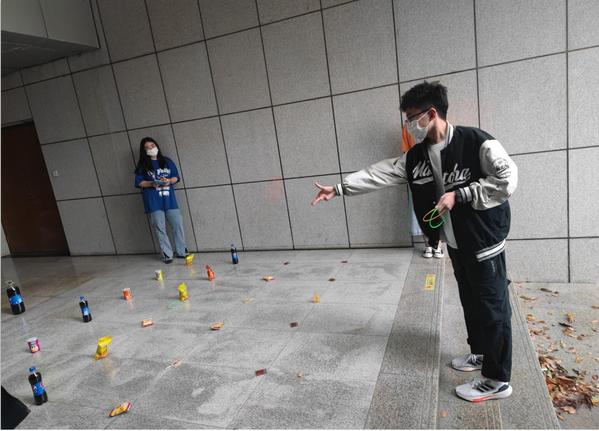 在趣味套圈活动现场,学院提前为同学们准备了各种精美小奖品,学生们按班级分批错时参加,现场氛围热烈有趣,青春洋溢的欢笑声此起彼伏。大家兴致勃勃,大显身手,有同学百发百中,用小圈瞄准心仪目标后精准出击,享受到了活动过程的紧张**,也获得了满满的成就感和幸福感。