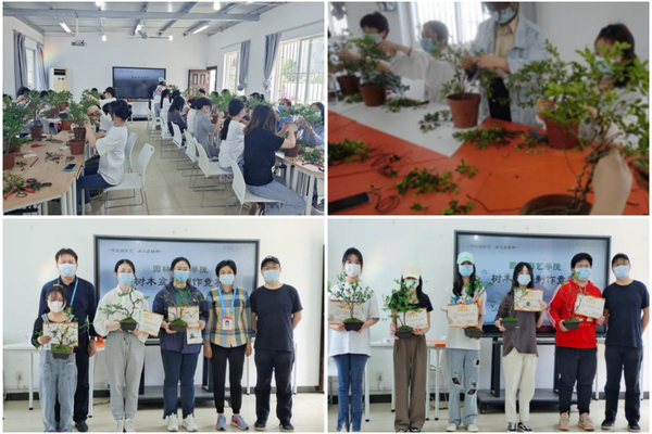近日,园林园艺学院在严格遵循疫情防控要求下,在实训基地举办了一场树木盆景制作竞赛。学院党总支副书记陆幸福以及驻校老师徐志英、刘兵参加此次活动。本次活动主要考察了同学们的动手能力以及对专业技能的掌握程度,同时希望同学们可以通过此次活动发扬并传承盆景技艺精益求精的工匠精神。