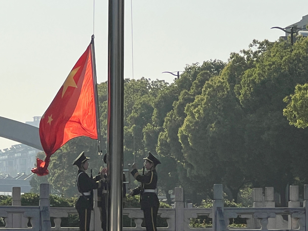 7时整,国旗班队员身着统一服装,迎着朝阳,踏着铿锵有力的步伐,护送着鲜艳的五星红旗走向旗杆,庄严的升旗仪式正式开始。通过直播观看升旗仪式的师生庄严肃立,怀揣着对祖国的无限热爱和崇高敬意,面向在雄壮的国歌声中冉冉升起的五星红旗行注目礼。