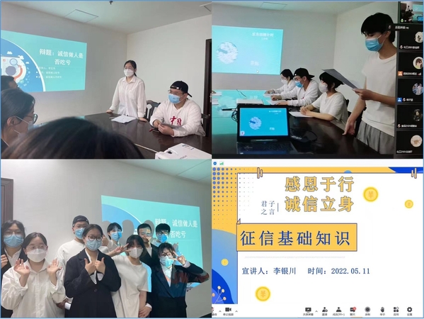 在完成2022届毕业生贷款确认工作基础上,李银川老师召开“云”座谈会,为16名毕业生详细解读了《生源地助学贷款还款之南》。5月10-20日,各班召开诚信教育主题班会,多角度分享诚信感悟。5月11日,学生通过线上诚信专题讲座掌握了征信基础、五险一金等方面的知识,明确了人生规划。