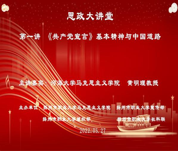 5月27日上午,河海大学黄明理教授为永利官网党员干部、广大师生作了题为《<共产党宣言>基本精神与中国道路》的专题讲座。本次讲座是由马克思主义学院、党委组织部、党委宣传部和校社科联联合举办的“思政大讲堂”第一讲,永利官网近700名师生参加学习。
