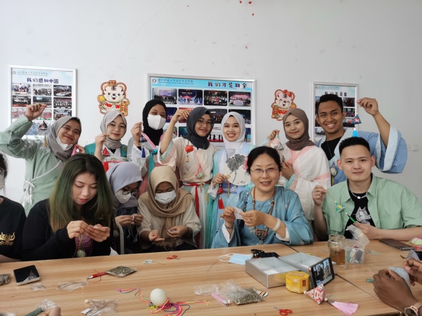 “路漫漫其修远兮,吾将上下而求索……”在国际交流学院和艺术学院联合开展的“‘粽’情四海,端午情长”端午节主题活动现场,伴随着美妙的歌曲《离骚》,学校中外学生欢聚一堂,穿上汉服,挂上五彩鸭蛋网兜,共庆端午佳节,体验中国传统文化。