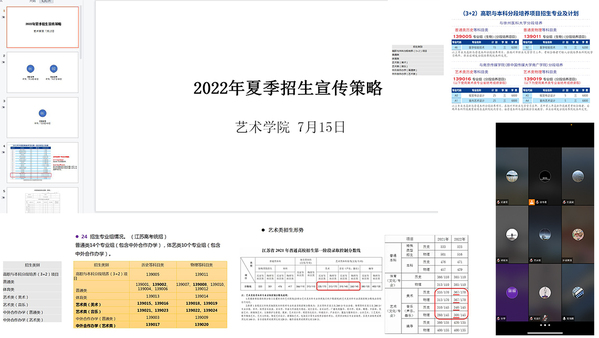 为进一步推进学校及学院招生宣传工作,围绕新形势下的艺术类专业招生新特点,发动教职工引导广大考生对学院专业特色优势的了解,重点推介学院今年新增的美术教育(师范)专业和2个“3+2”贯通培养项目,吸引更多优秀考生报考永利官网,7月15日上午,艺术学院召开线上2022年艺术类招生宣传政策解读及工作布置会,学院全体班子成员、专业招生和片区招生负责人、线上招生团队相关教师共同参加了本次会议。
