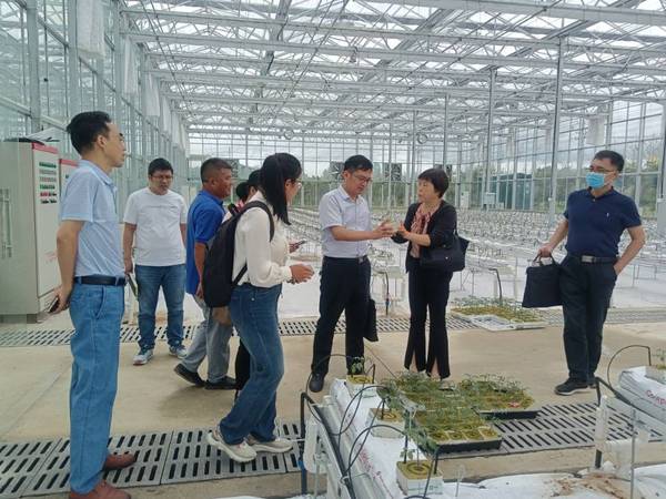 到达扬州市扬子江种业有限公司,黄华明一行考察调研了该公司和江苏省农业科学院共建的总面积达3000m²、总投入600多万元的智慧温室大棚, 这种大棚集移动互联网、物联网、视频监控、RFID、软件工程等技术为一体,可实现农业综合生态信息自动监测、大棚温湿度远程控制、水肥一体化自动灌溉等,为农作物打造最适宜的生长环境,促进农业规模化、标准化发展。