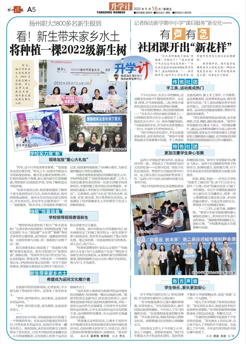 【扬州晚报】扬州职大5800多名新生报到——看!新生带来家乡水土 将种植一棵2022级新生树