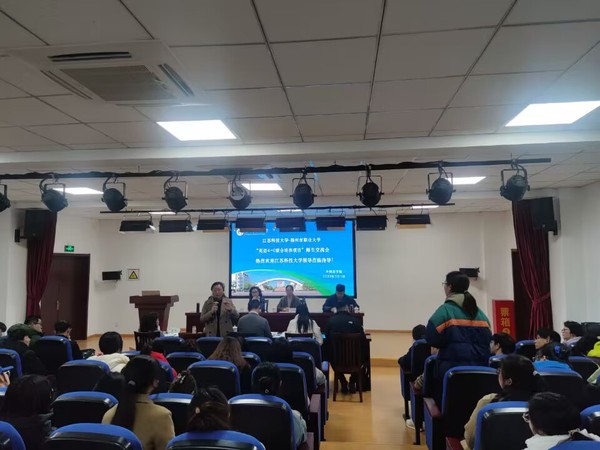 姚双良为在场学生们作《更高平台,更宽视野,成就更好的自己》主题讲座,简要介绍了江苏科技大学的基本概况,并勉励“4+0”学生志存高远,放眼未来,及早规划自己的求学路和人生路。