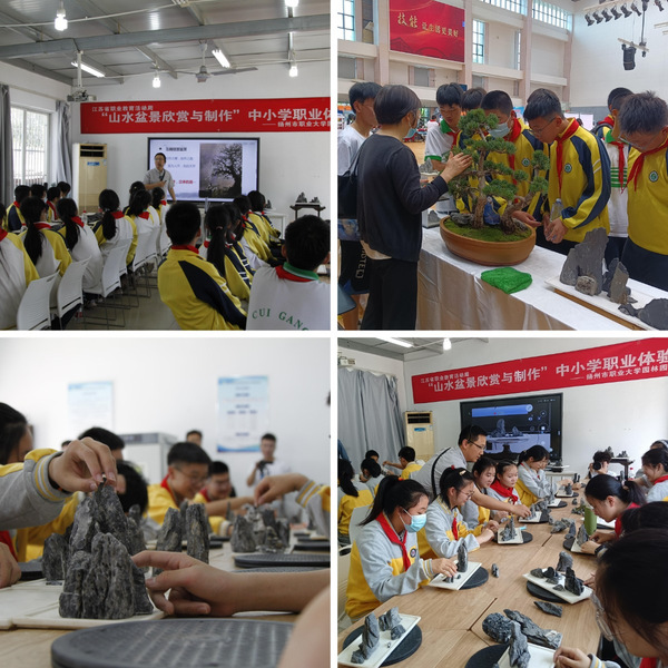 为进一步营造全社会关心支持职业教育改革发展的良好氛围,大力弘扬劳动光荣、技能宝贵、创造伟大的时代风尚,宣传展示技能创造美好生活,5月14日,园林园艺学院结合扬州市职业教育活动周组织开展了“山水盆景的制作与欣赏”中小学生职业体验活动。