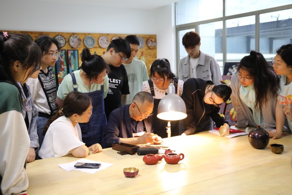 讲座结束后,张来喜来到学校艺术学院漆艺工作室,向产品艺术设计专业的学生展示自己的作品,对学生的毕业作品进行现场指导,学生们均感到受益匪浅。产品艺术设计2001崔燕妮说:“通过参加这次活动,我感受到了漆艺的文化内涵。漆艺不仅仅是一种艺术形式,更是一种文化传承和表达方式。在漆艺作品中,我们可以看到传统文化的影响和积淀,更感受到张大师对生活的热爱和追求。”
