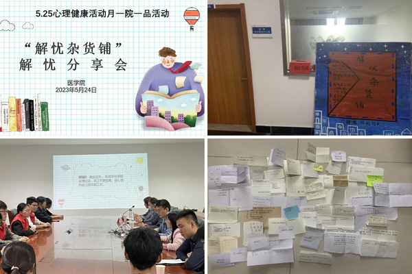 5月24日,医学院“解忧杂货铺”再次开张,为有烦恼和忧愁的同学们排忧解惑,力所能及地提供合适的建议。此次“解忧杂货铺”分享会邀请国家二级专业心理咨询师、学校心理发展与咨询中心张东老师,国家二级专业心理咨询师、医学院邱萌教授和袁红网老师,医学院就业信息员戎新玲老师,医学院优秀毕业生、前医学院学生会主席胡跃昆,江苏省三好学生、护理2006班长刘超等为同学们“解忧”。