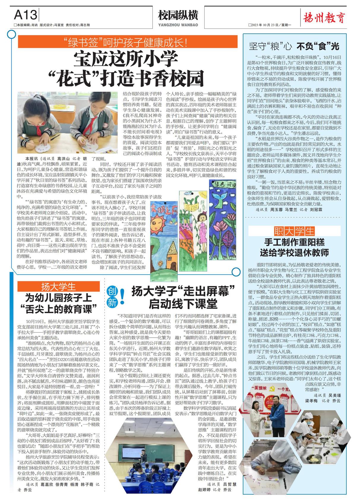 【扬州晚报】职大学生手工制作重阳糕送给学校退休教师