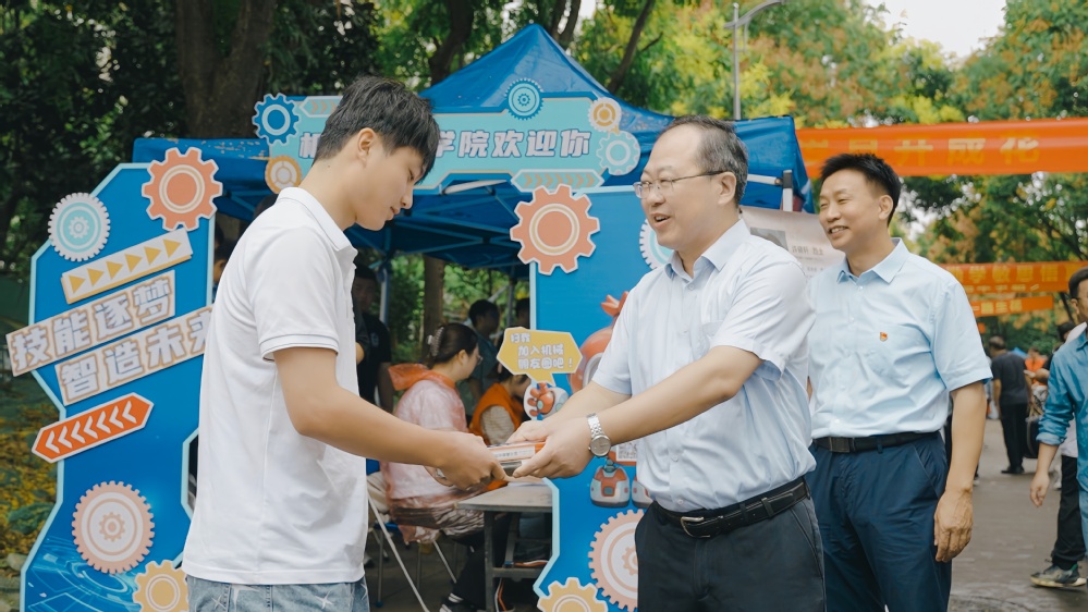 校党委书记马顺圣,党委副书记、校长周春光等校领导以普通党员的身份走进报到现场,和同学们亲切交流,与各学院、各部门的工作人员一起做好新生接待工作,为新生代表准备了书籍、文具套装等用品。