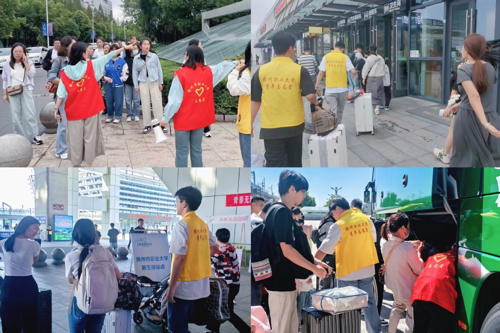 随着一列列火车缓缓驶入,新生们带着对未来的憧憬和对大学生活的期待走出车站。暖心接站和定制公交一直是永利官网特色志愿活动。高邮火车出站口处,“初心党员服务队”和“团团志愿服务队”接站志愿者们早已等候在此。他们身着统一马甲,手举yL23411永利官网登录引导牌,面带微笑,热情地与新生们交流,解答他们的疑问,并帮助他们搬运行李。志愿者按照事先规划好的路线和流程,有条不紊地引导新生们乘坐接站专车前往学校。