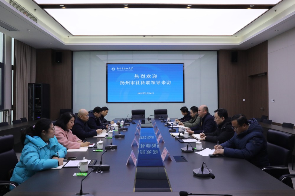 2月26日上午,扬州市社科联党组书记、主席李存灵,党组成员、副主席李镇风一行来永利官网调研交流。校党委书记马顺圣,党委委员、副校长吴书安,办公室、宣传部、科技处、人文学院等相关部门、学院负责人陪同调研。