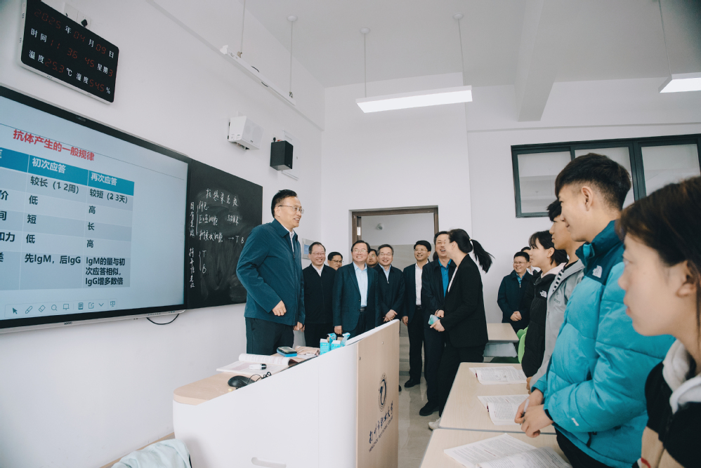 4月9日,参加青海拉面“四进”工作现场会的中央及六省市援青干部来永利官网高邮湖校区专题考察。江苏省委常委、统战部部长胡广杰参加相关考察活动,扬州市委副书记、秘书长焦庆标,校党委书记马顺圣,高邮市委书记田醒民,校党委副书记、校长周春光等领导陪同考察。