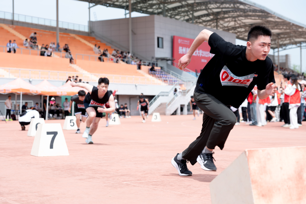 奋进的脚步永不停歇,拼搏的精神一往无前。田径赛场上,19个甲组代表队、8个乙组代表队展开激烈角逐。机械学院健儿在男子4×100米接力赛中,以46.82秒的成绩刷新了校运会纪录。百米赛道上的风驰电掣,跳高横杆前的纵身飞跃,铅球投掷区的力拔千钧,接力赛场中的默契配合,共同绘就了赛场上热血澎湃的竞技画卷。