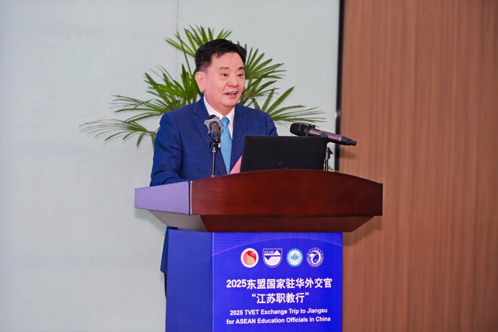 史忠俊在致辞中表示,中国-东盟中心将持续推进教育等各领域合作,以多项活动丰富中国-东盟全面战略伙伴关系内涵,助力中国-东盟命运共同体建设及发展。期待本次活动能够进一步推动东盟与江苏在职业教育领域的相互了解和务实合作,更好服务区域经济社会发展。