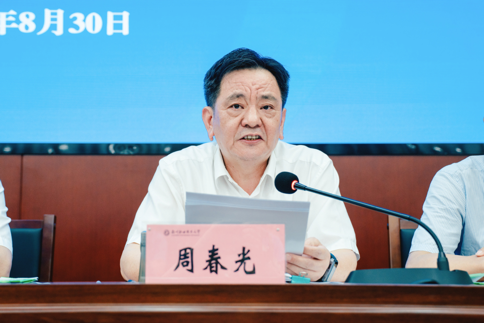 周春光在主持时传达了2025年全省高校领导干部暑期学习培训班主要精神。周春光对下一步工作提出要求:一是精心做好本科专业申报及学位授予单位现场评估,明确本科专业申报“择优推荐、服务地方、超常规布局、文工并蓄”的战略原则。二是聚焦内涵建设,从提升教学能力、强化师资队伍建设、打造标志性成果、维护教学秩序入手,提升发展能级。三是优化制度供给,修订相关制度。四是加强校地合作,优化校区资源配置。五是改变作风,强调守土有责、统筹协调,提升工作质效。