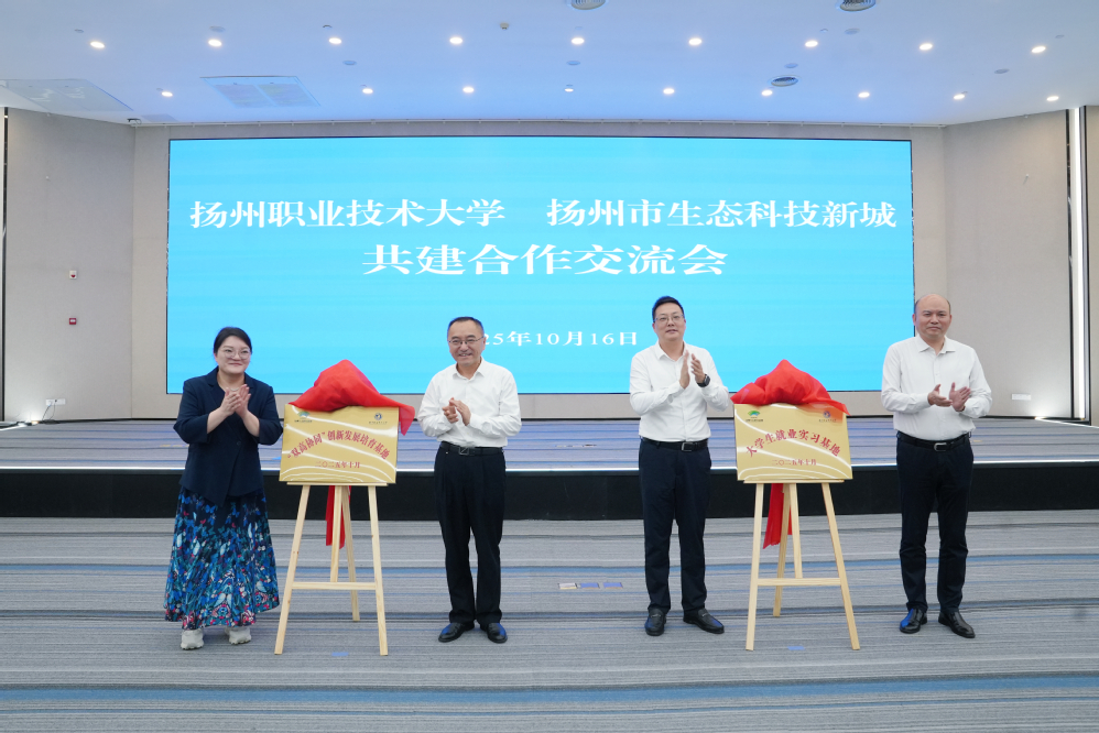 李桂山指出,扬州职业技术大学师资力量深厚,教学成果斐然,专业设置与新城主导产业高度契合。当前新城正处于高质量发展的关键时期,亟需强大的人才支撑和智力支持。他希望,双方以此次基地揭牌为契机,以“优势产业聚集区+优势学科专业群”协同发展为核心路径,探索“有组织科研+有组织转化”模式,在人才培育、智能制造、信息技术、乡村振兴等领域取得突破性进展,共同激发“双高协同”创新发展活力,全力推进各项合作顺利实施,推动新城乃至扬州经济社会高质量发展迈上新台阶。