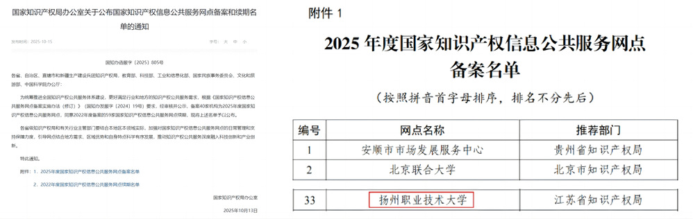 近日,国家知识产权局办公室印发《国家知识产权局办公室关于公布国家知识产权信息公共服务网点备案和续期名单的通知》,学校成功入选2025年度国家知识产权信息公共服务网点备案名单。